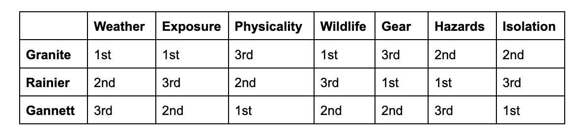 Granite vs. Gannett vs Rainier: Mountain Summaries